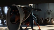 In the background, he can be seen panting with happiness once Charles says "treat" to Carl and Russell.