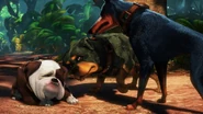 Alpha, Beta and Gamma are chasing Kevin when Dug accidentally trips them, causing them to lose the bird. Alpha tells Dug to "watch the bird's favorite rock and tell them if it moves." Dug accidentally knocks the large rock over, almost squashing Alpha and the rest of the pack. Alpha then tells him to sit in the hole and, while giving a speech to his packmates, gets buried by Dug, who sank through the hole. Alpha is shown getting beat up several more times until he calls "master" to tell him that Dug caused them to lose the bird, and that he is a bad dog.