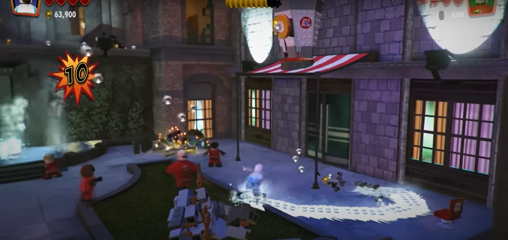 - LEGO The Incredibles (a logo appears in a coffee shop on the streets of Metroville)