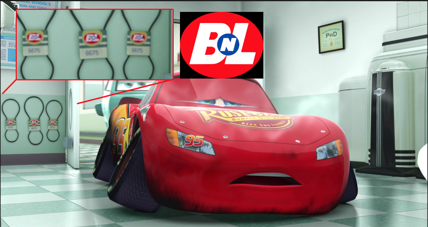 - Cars 3 (a logo appears in a racing stadium and in the final credits as "BnL Raceway")