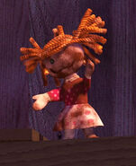 The Charred Rag Doll is a minor character in Toy Story. She is a one-eyed rag doll (similar to Janie and Sally), possibly an explosion victim. Once belonging to Hannah, the doll was abused by Sid and abandoned in his sandbox (along with the Red Toyota Hilux). The Charred Rag Doll also repeatedly says "Mama!" so she may be a talking doll. Her voice is provided by Danielle Judovits.