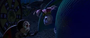 Much later, when Hopper takes Flik hostage, the Circus Bugs give chase. Francis loses grip of Slim while flying through a tree and is unable to locate him in the branches.
