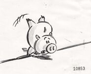 - In the Black Friday reel, Hamm was depicted as being a bipedal pig (presumably a plush toy) instead of a piggy bank. In addition, he also was given a voice that was more pig-like, similar to Porky Pig, albeit slightly deeper.