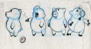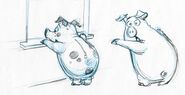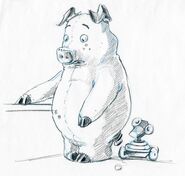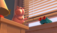 - Hamm appears as a car during the end credits of Cars. Mack calls him a piggy truck.