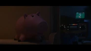 After Bonnie returns home from Poultry Palace with Rex and Fun Meal Buzz Lightyear (the latter having switched places with the real Buzz), Hamm alongside the other toys welcomes Rex home, although after Fun Meal Buzz reveals himself, he and the other toys quickly realize that he isn't the real Buzz. Despite this, even though Woody is arguing with Rex for the latter being gullible enough to fall for the obvious trick by the Fun Meal Buzz, Hamm notes that the Fun Meal Buzz is a really good ice dancer regardless (referring to his skating around). However, Hamm quickly changes his opinion when Fun Meal Buzz, after stealing Woody's hat, proceeded to slap Hamm's behind, requesting that someone tackle Fun Meal Buzz, also proceeding to thank Woody when the latter managed to do so almost immediately after he requested this. He is later present during the planning of a rescue operation to bring Buzz back, with Hamm suggesting they jimmy the lock, although the planning proved to be unnecessary after Buzz was revealed to have escaped via the drive-thru, with him and the other toys greeting him enthusiastically.