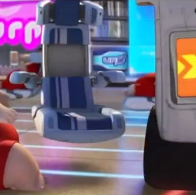 Hoverchairs are the primary means of transportation for the residents of the Axiom in WALL•E. They started off as a simple entertainment and convenience but, by the year 2805, they had become the only way to get around the ship due to the condition of the passengers. The hoverchairs also include a built-in holographic video chat system.