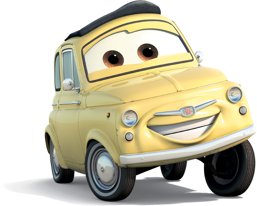 Luigi is a main character in Cars, Cars 2 and Cars 3. He is a yellow Italian 1959 Fiat 500. He runs his own tire shop, Luigi's Casa Della Tires. He is Guido's boss and best friend.