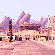 Radiator Springs is a town featured in Cars where Lightning McQueen ends up after clumsily destroying the town's main road.