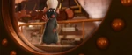 Almost getting roasted, cooked, chopped and seen, Remy gets to the soup undetected and was about to make good his escape via an open window. He halts and then proceeds to add ingredients into the soup, and was caught red-handed by a stunned Linguini. Remy was hastily hidden away when the restaurant's new owner Skinner sees a soup ladle in Linguini's hand and berates him for cooking. The soup is served to Linguini's dismay, but proved popular to a critic. Remy, pleased, was about to escape but was caught. Linguini was told to hastily dispose of him, trapped in a jar, and he cycled to the River Seine to dump him.