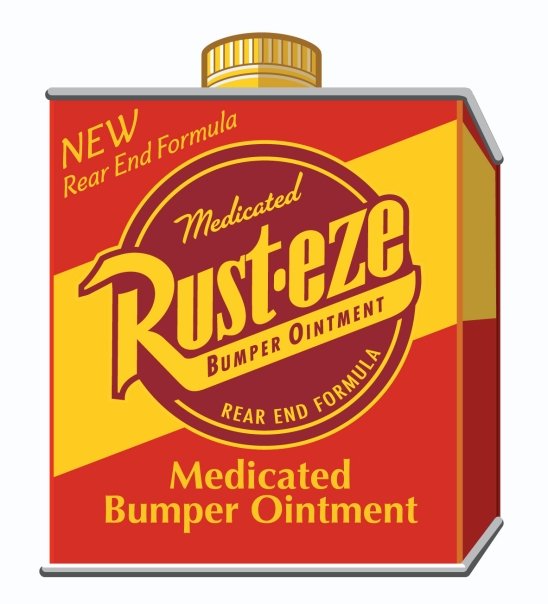- "Yes, yes, yes! Lightning McQueen here. And I use Rust-eze Medicated Bumper Ointment, new rear end formula! Nothing soothes a rusty bumper like Rust-eeeze. Wow! Look at that shine! (actual results may take up to 36 weeks). Use Rust-eze; And you too, can look like meee! Kaa-Chow!"