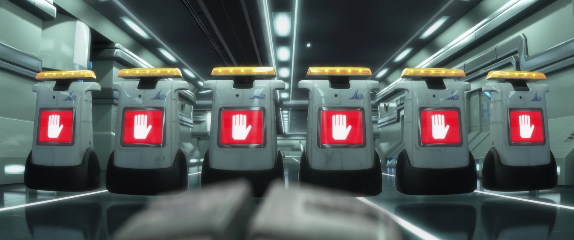 - "Please remain stationary. A service bot will be here to assist you, momentarily."