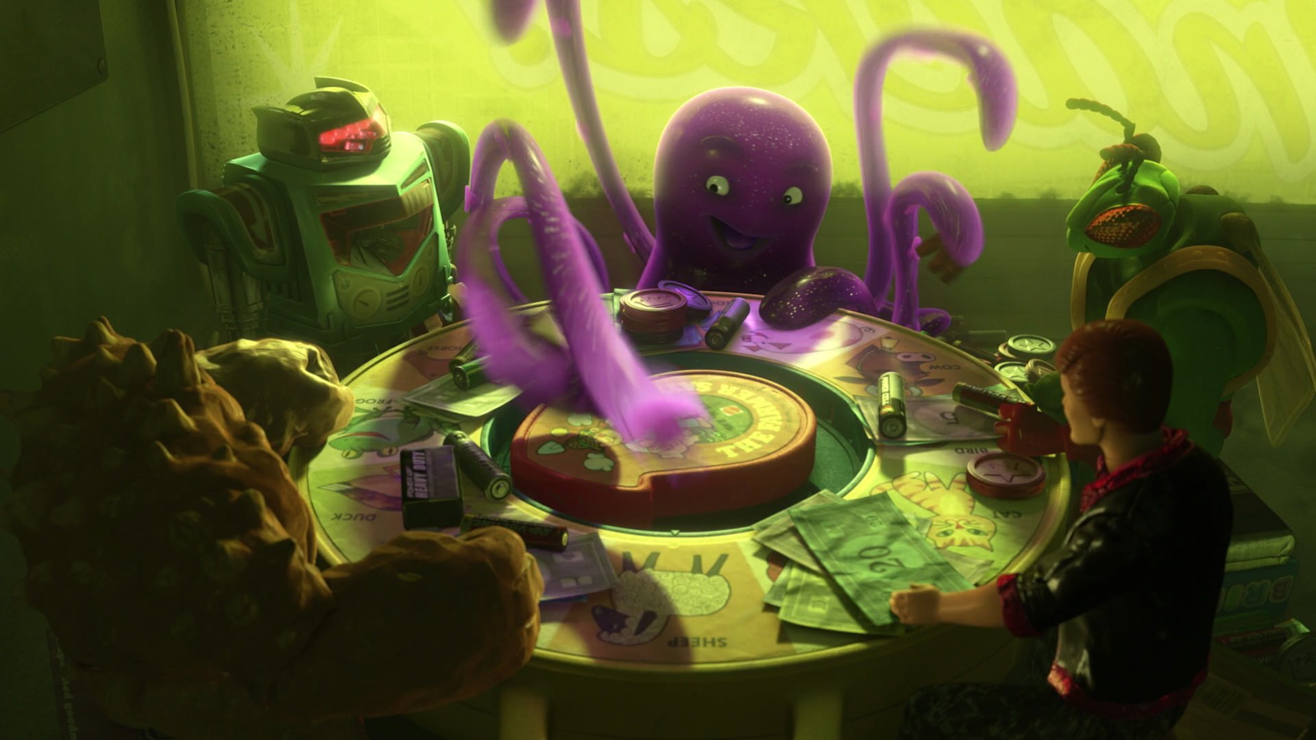 - A toy version of Mr. Ray from Finding Nemo appears.
