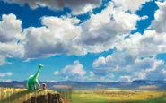 Disney/Pixar's The Good Dinosaur shows us an alternate universe where Dinosaurs never became extinct and focuses on a young dinosaur named Arlo. One day when Arlo gets lost in the wilderness, he teams up with a small human boy named Spot on an incredible adventure to get home, during which Arlo bonds with Spot and learn a lot about himself.