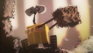 The WALL•E's slowly stopped functioning over the years. The last active WALL•E on Earth has continued the same routine each and every day for 700 years. Each morning he would wake up and recharge his solar cells before setting off to fulfill his directive of constructing trash towers with compressed cubes, then return to his truck, a large vehicle designed for carrying the WALL•Es over all terrains, to shut down for the night. But by this time, he has become sentient and developed a personality. To cope with the boredom of doing the same thing every day, other than working with his trusty cockroach companion Hal, he has become extremely curious. Whenever he would find anything he finds interesting in the refuse (a Rubik's cube, a light bulb, a match lighter, etc.) he would place it in a BnL cooler and take it back to his truck at the end of the day, placing it in his ever-growing knick-knack collection. He would also salvage spare parts for himself from his fellow deactivated WALL•E units, storing the most important pieces at home should the worst happen. The pride of his collection is a VHS copy of Hello, Dolly!, which has taught him how to dance as well as all of his emotions. He loves the film and its music so much that he plays the song "Put On Your Sunday Clothes" while he works, and when he watches the scene with the song "It Only Takes a Moment", he learns how to hold hands; however, because he has no one else to hold hands with, he becomes lonely.