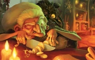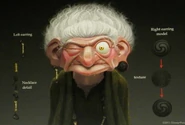 "Deep in the overgrown Highland forest, a ramshackle blackhouse cottage is home to the Crafty Carver. This seemingly harmless, eccentric and long-in-the-tooth crone specializes in the whittling of wooden bear trinkets, figurines and curios. But the mysterious recluse is more than meets the eye. When Merida sees through the guise and reveals her as the Witch she truly is, Merida begs for a magical solution to her problems. The Witch begrudgingly gives in, conjuring a haphazard spell with an obscure riddle, which hold Merida’s fate in the balance."[1]